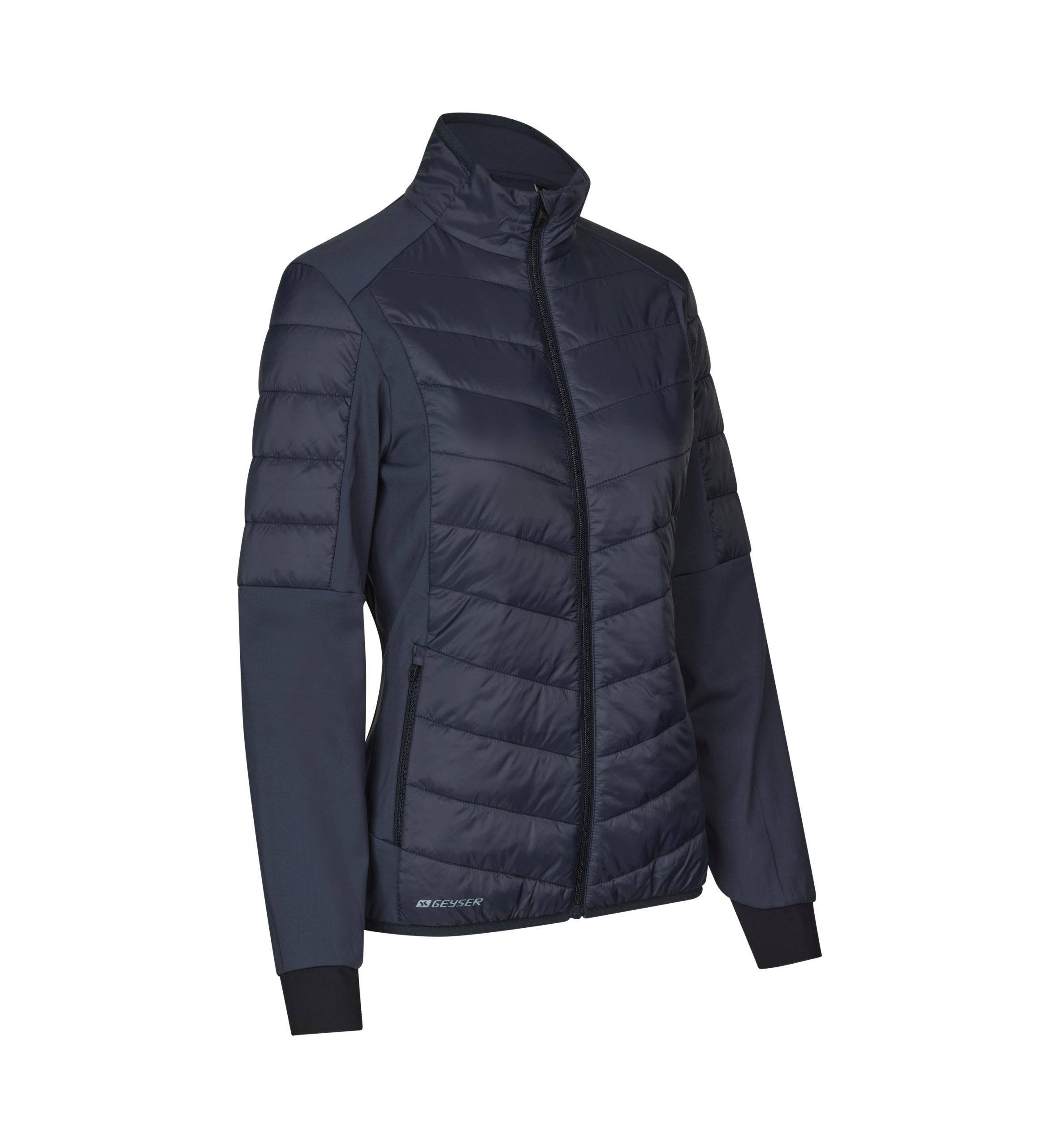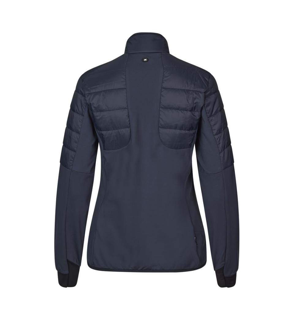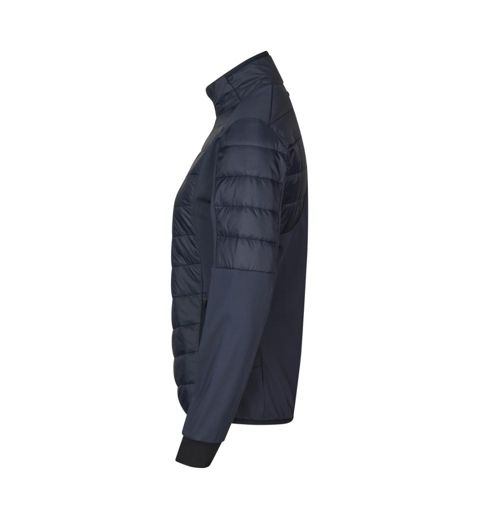 Sporty komfortabel hybrid jakke. Front, bag og ærmer i let quiltet vindtæt kvalitet. Vattering er THERMOLITE®T-DOWN lavet af recycled plastikflasker. Jakken er kombineret med en lækker blød 4-vejs stretch kvalitet, for optimale komfort og bevægelsesfrihed. YKK lynlås i front og sidelommer. Elastisk kantbånd i bund. Manchetter i stretch kvalitet. Inderlommer. Refleks print på front.