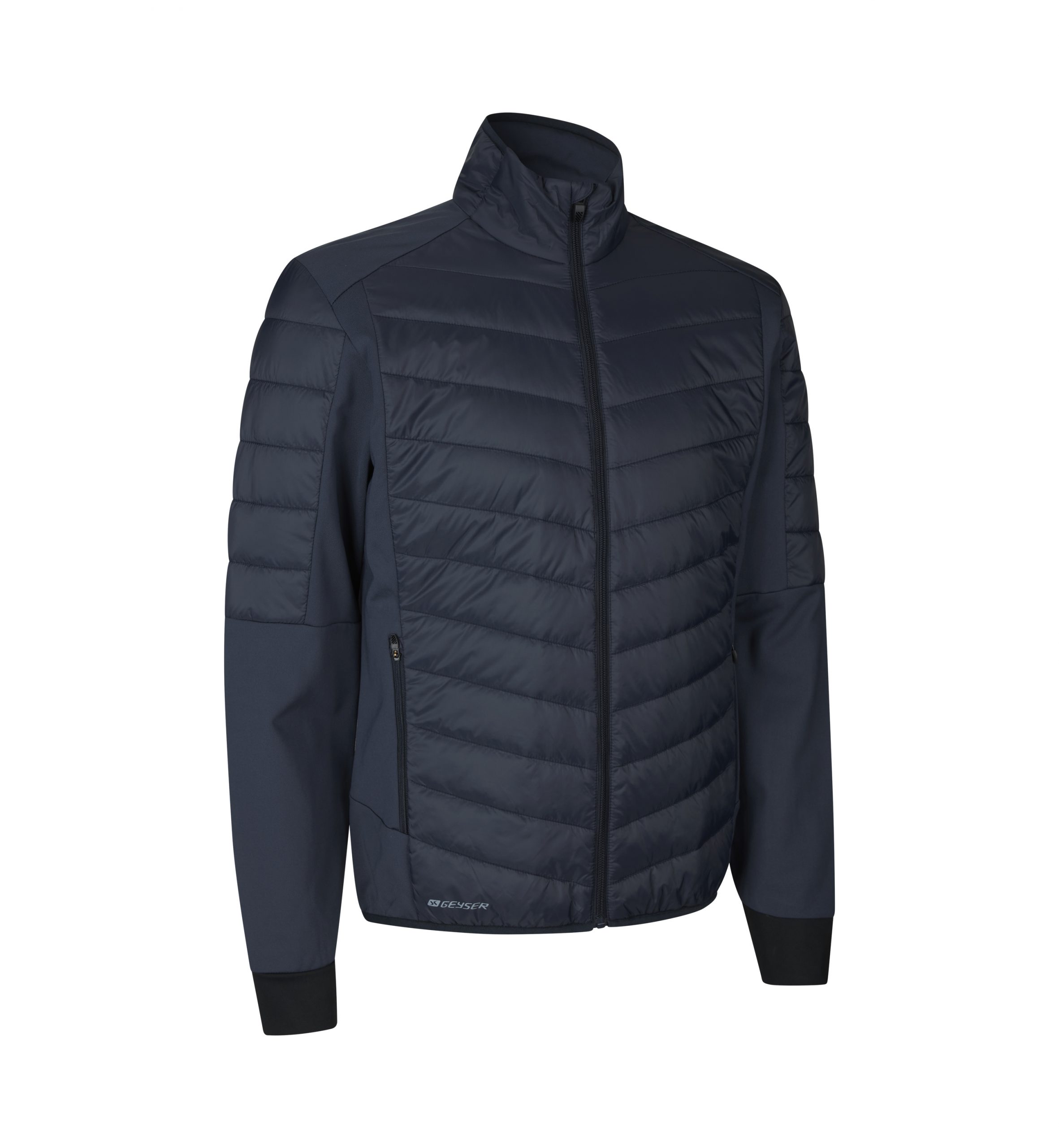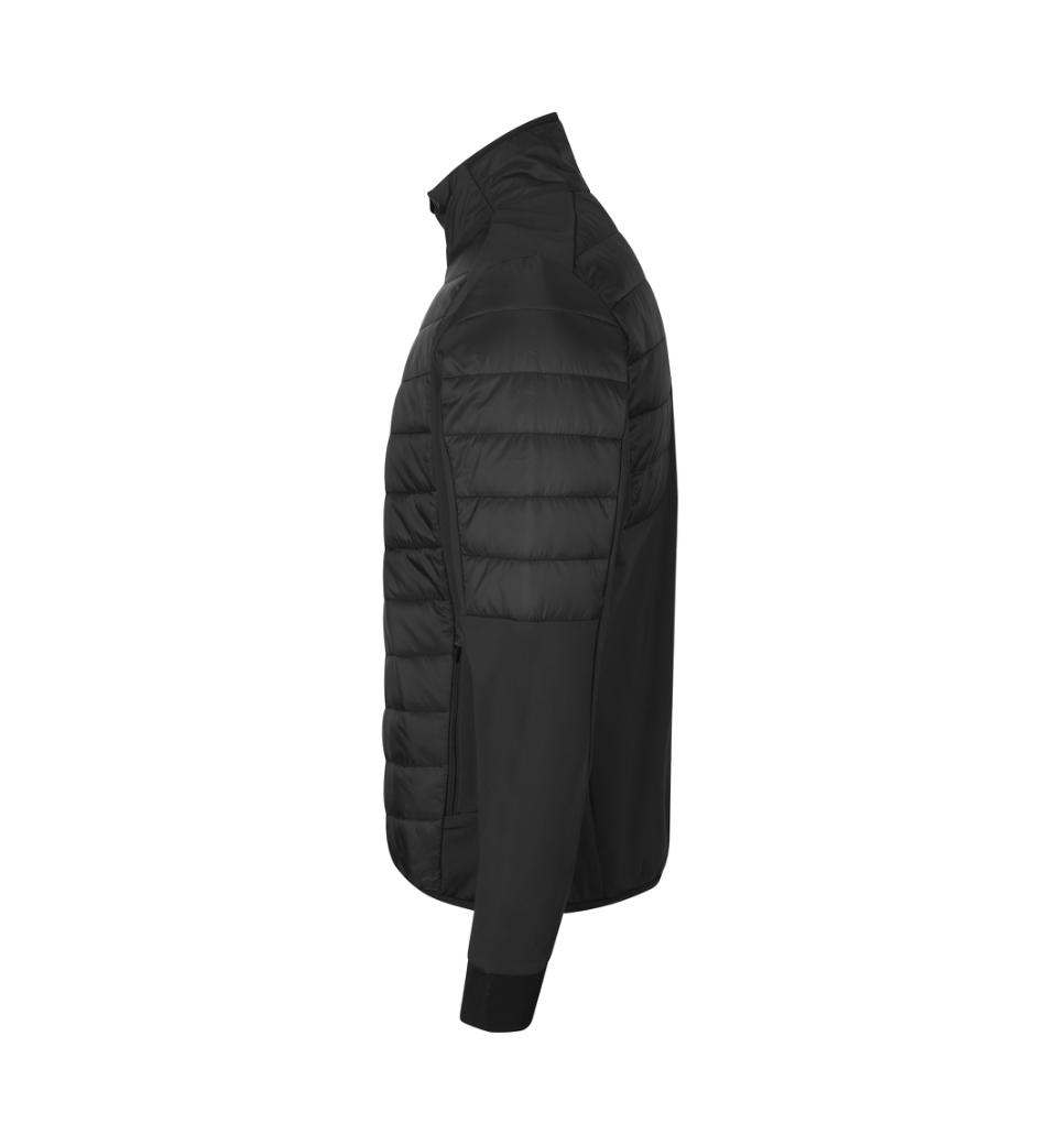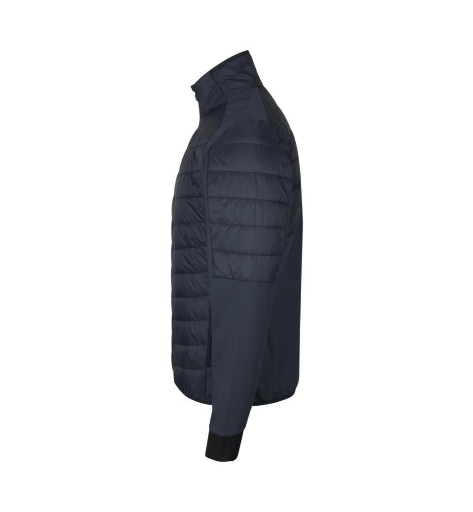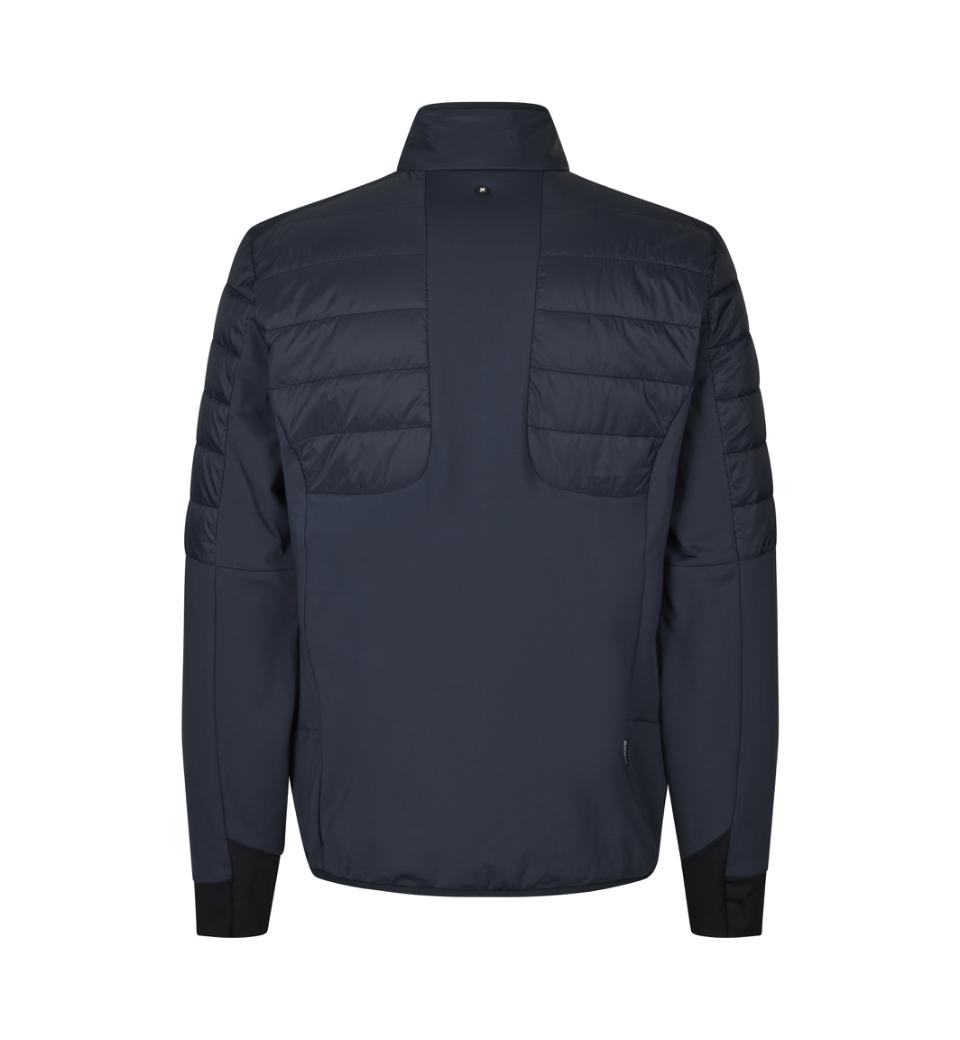 Sporty komfortabel hybrid jakke. Front, bag og ærmer i let quiltet vindtæt kvalitet. Vattering er THERMOLITE®T-DOWN lavet af recycled plastikflasker. Jakken er kombineret med en lækker blød 4-vejs stretch kvalitet, for optimale komfort og bevægelsesfrihed. YKK lynlås i front og sidelommer. Elastisk kantbånd i bund. Manchetter i stretch kvalitet. Inderlommer. Refleks print på front.