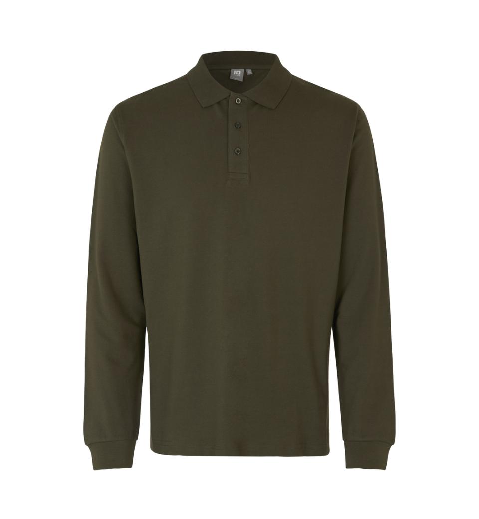 Tidløs poloshirt i pique kvalitet med stretch. Lange ærmer med elastisk rib afslutning. Indvendig med nakkespejl og nakkebånd. Tone i tone knaplukning.