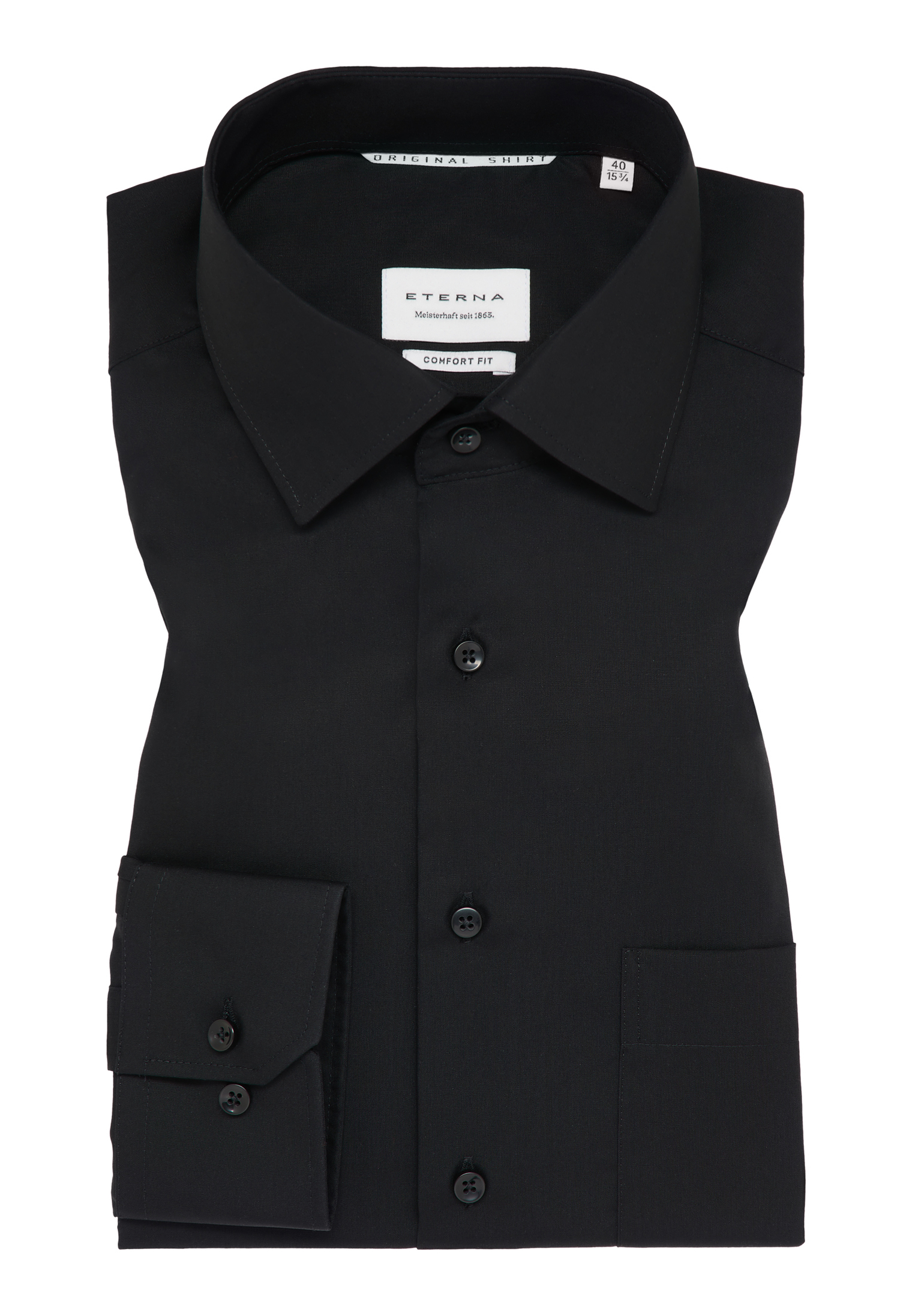 Denne ensfarvede COMFORT FIT langærmede skjorte har en klassisk Kent-krave og en brystlomme.