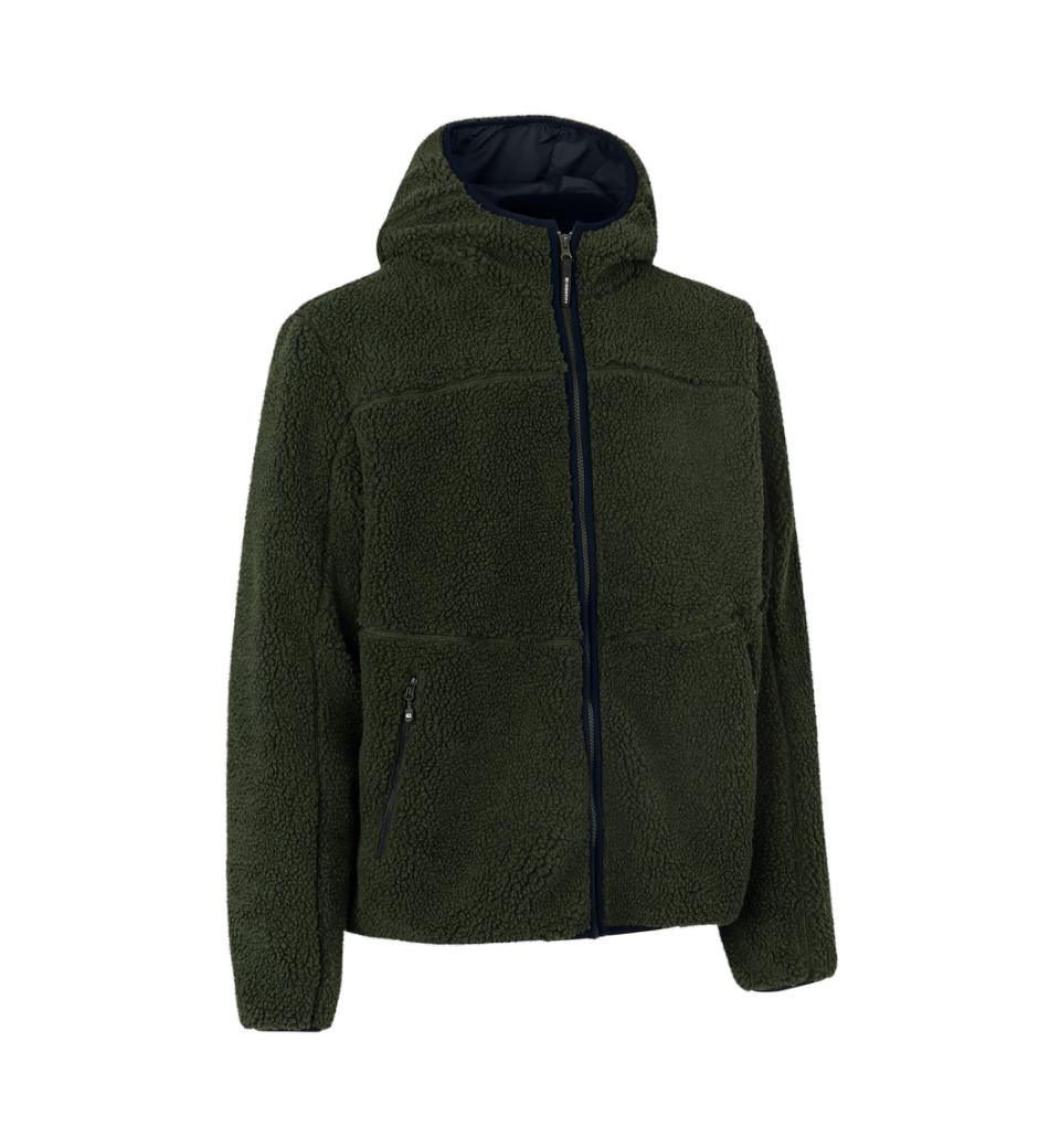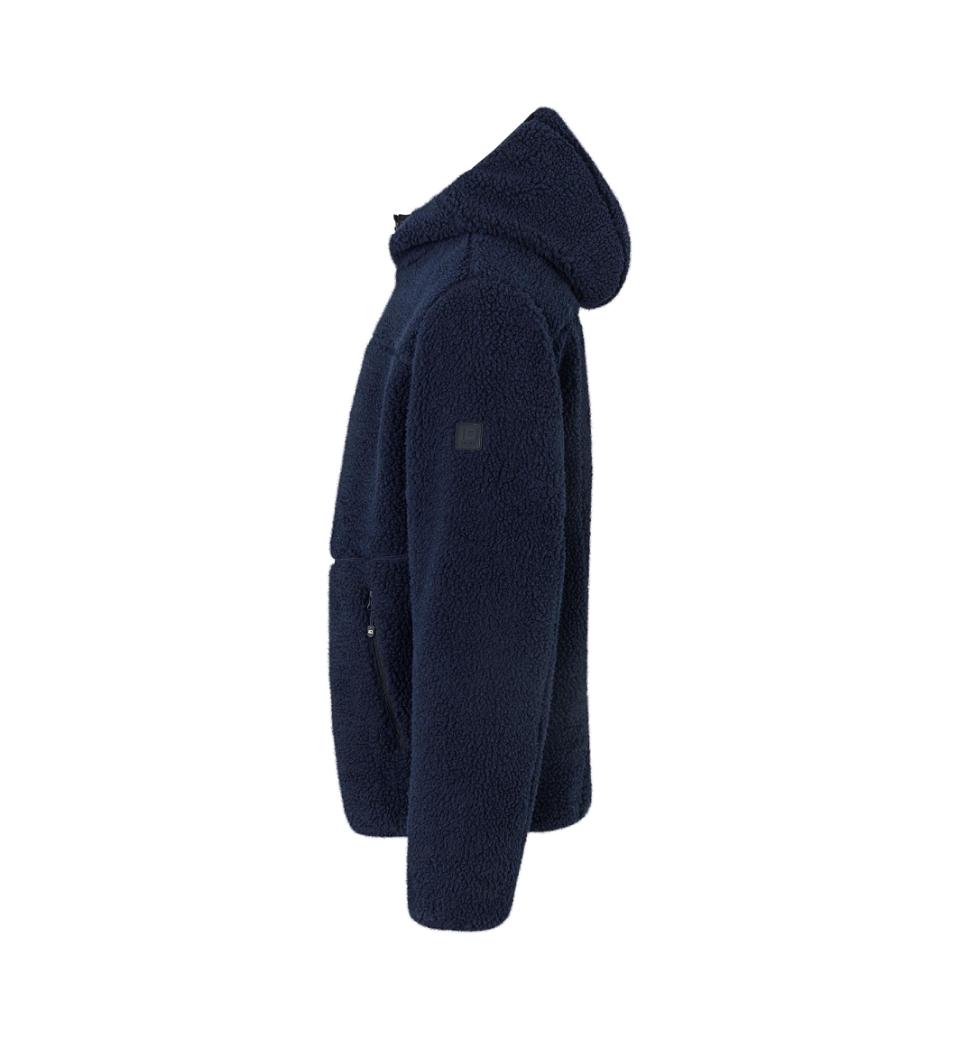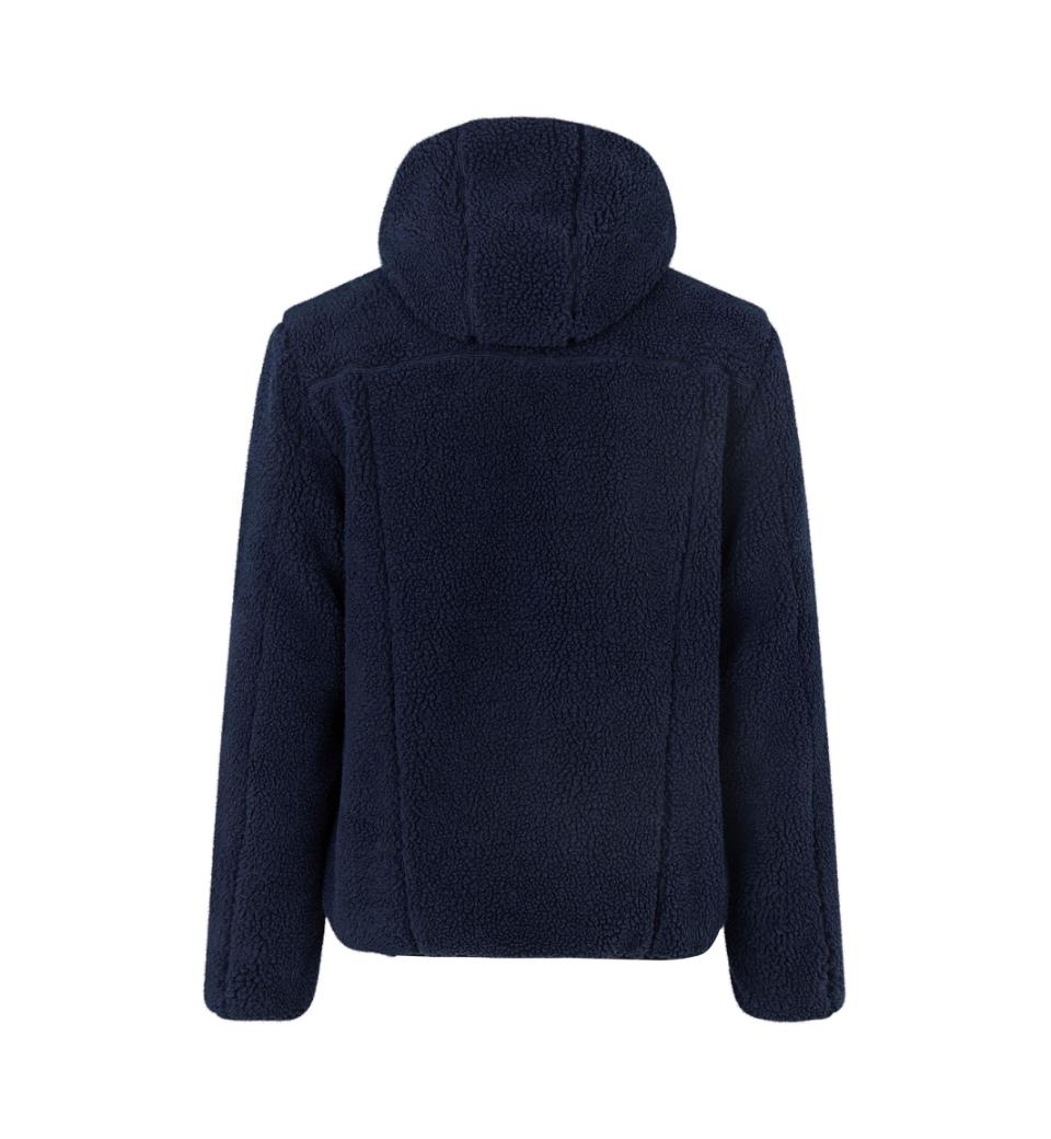 Blød teddy fleece jakke med hætte og indvendige lynlås lommer. Særligt velegnet til overgangsjakke til efter-eller forår. Jakken har kontrastfarve på inderside samt ærme og lynlås, som giver den et moderne præg.